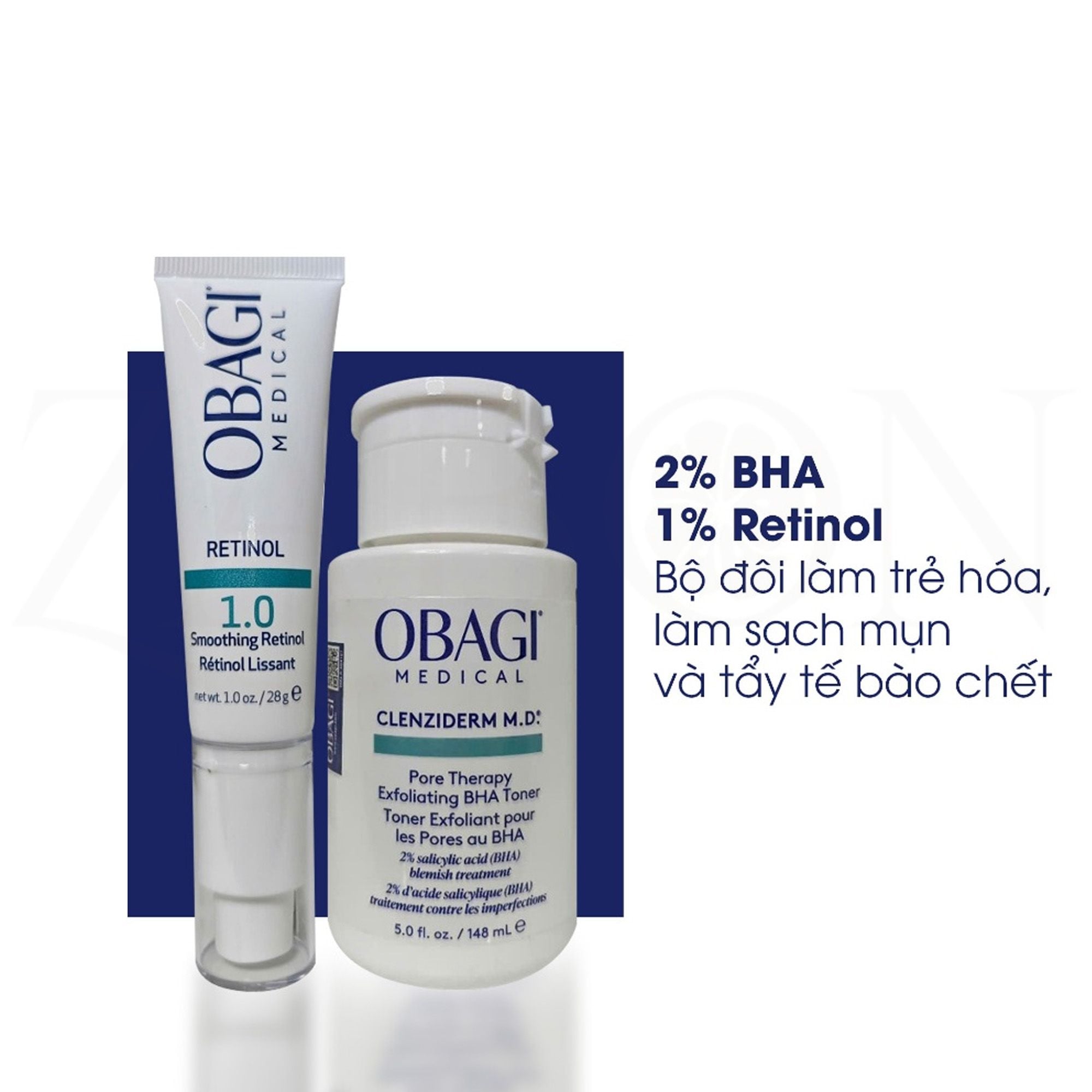 Bộ đôi dưỡng da Toner BHA Giảm Mụn Obagi Clenziderm M.D 148ml và Kem chống lão hóa & Tái tạo da 360 Retinol 1.0 28g