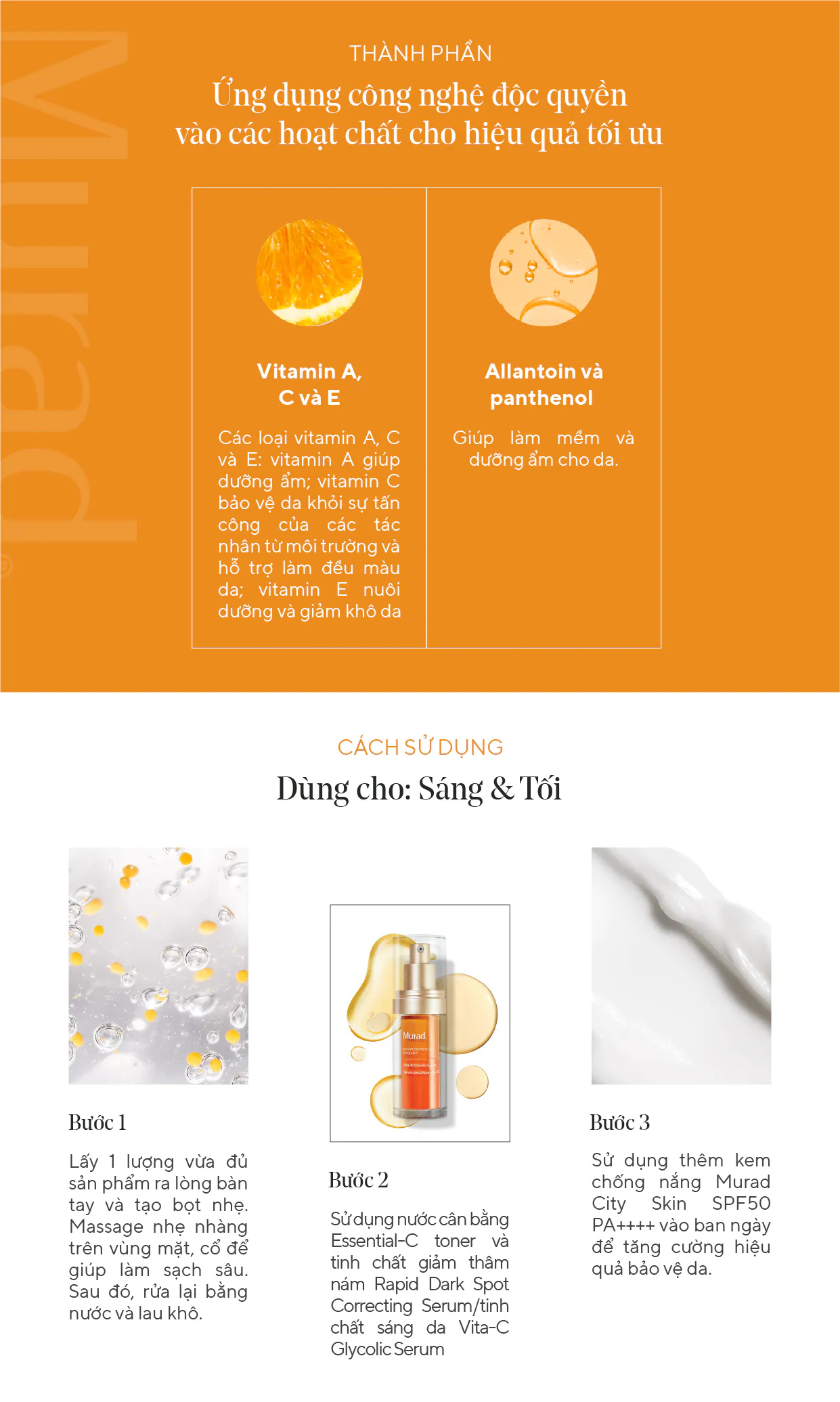 Gel rửa mặt sáng da Murad Essential-C Cleanser 148ml