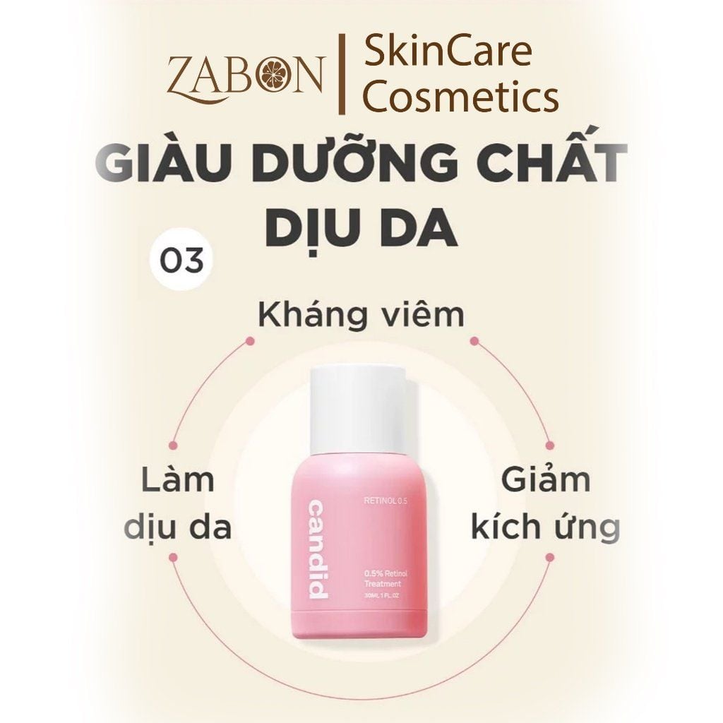 Hoạt chất Retinol 0.5% hỗ trợ cải thiện nền da CANDID 0.5% Retinol Treatment 30ml