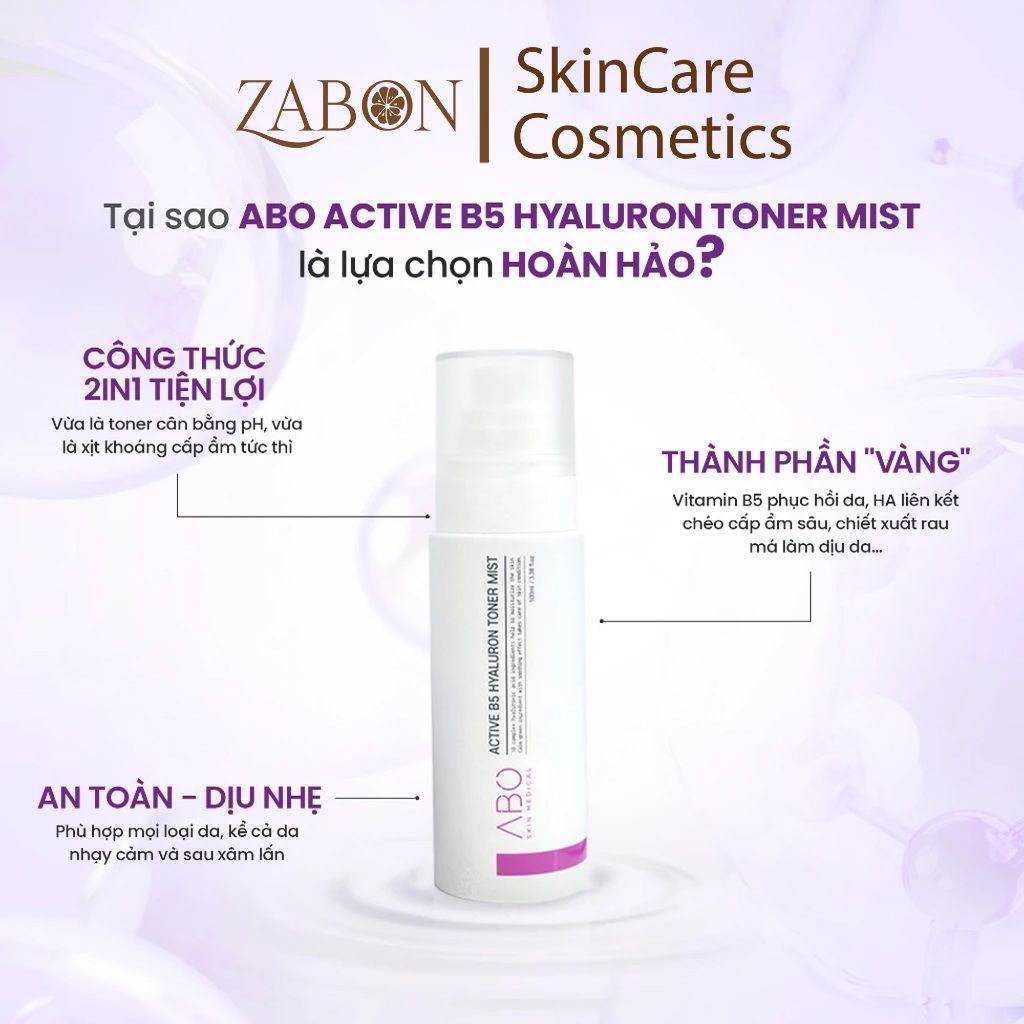 Xịt khoáng toner 2in1 B5 HYALURON TONER MIST ABO - Giúp cấp ẩm, căng bóng da, phục hồi da và chống lão hóa
