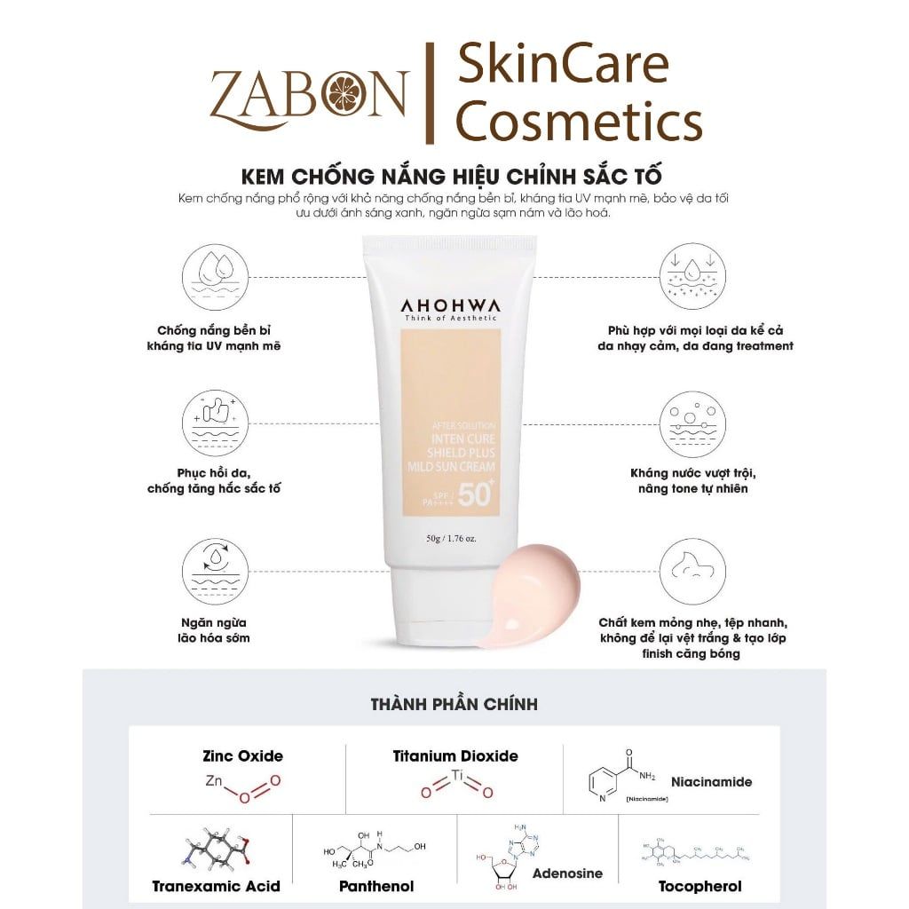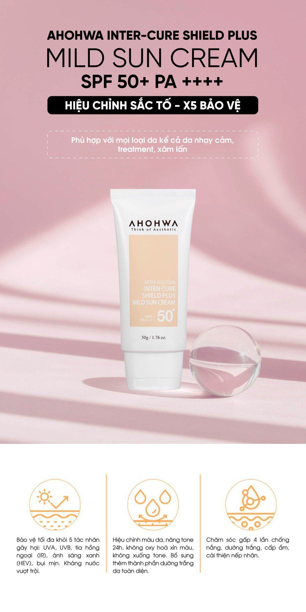 Kem chống nắng Ahohwa Inten Cure Shield Plus Mild Sun Cream SPF50+/PA++++ 50g