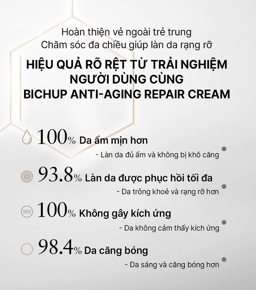 Kem dưỡng da với những thành phần Đông y cao cấp độc quyền: Tự nhuận bí đơnTM (Đông trùng hạ thảo, Collagen lộc nhung, Đàn hương), Siêu tử hà bí đơn (Bài thuốc chiết xuất từ thực vật, có tác dụng tương tự nhau thai) và Ba đơn thuốc bí mật Hoàng cung (Lộc nhung, nhâm sâm,bạch phục linh...) giúp mang lại làn da mịn màng bóng khỏe, tỏa sắc hồng nhuận.