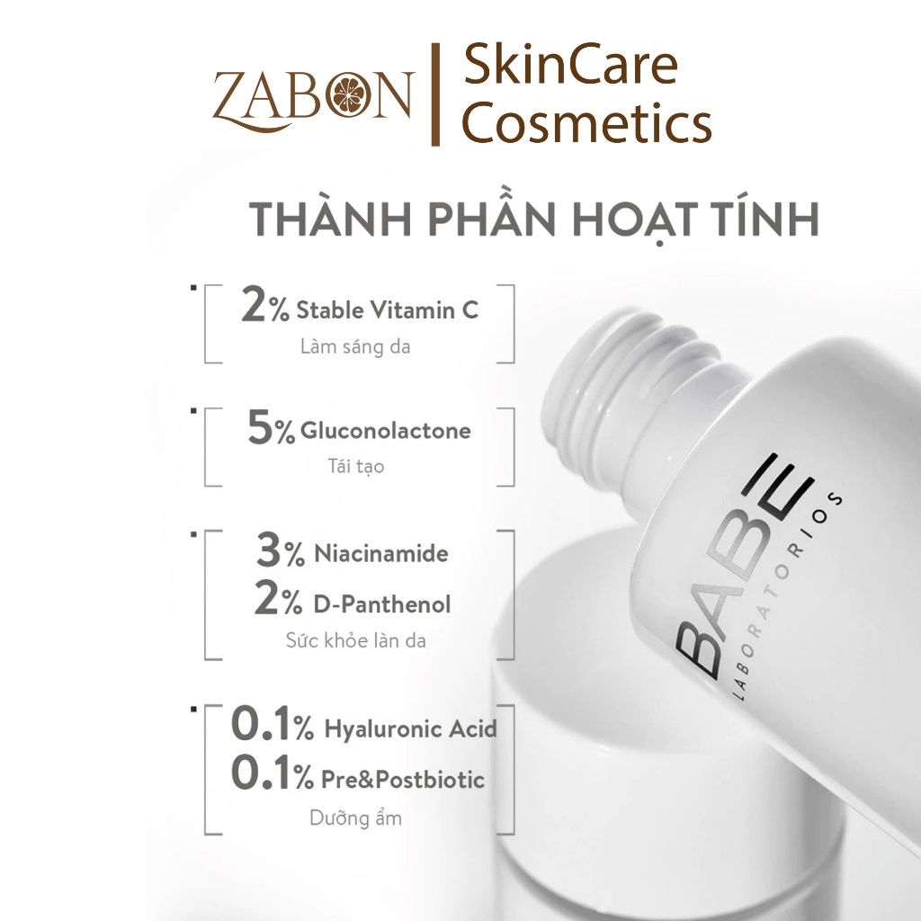 - STABLE VITAMIN C 2% : chống oxy hóa, làm săn chắc và hỗ trợ làm sáng da.