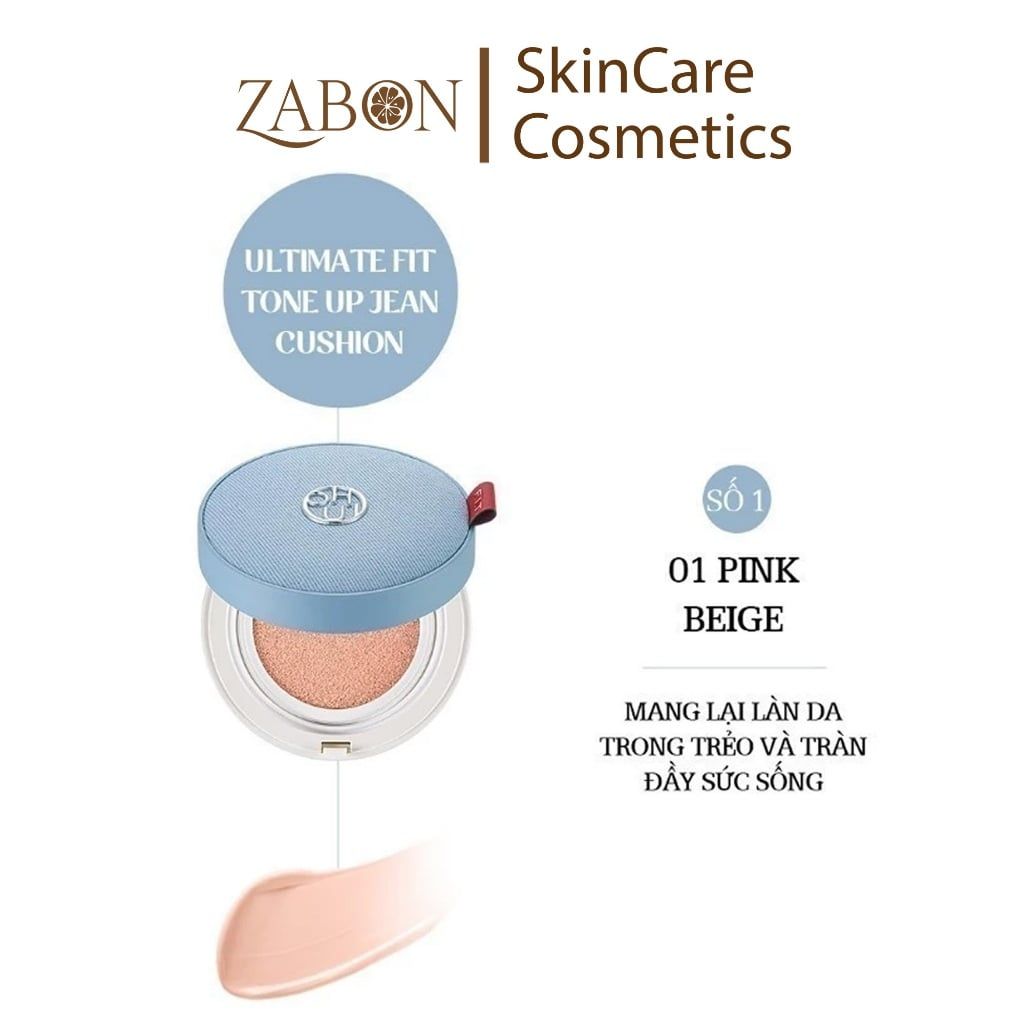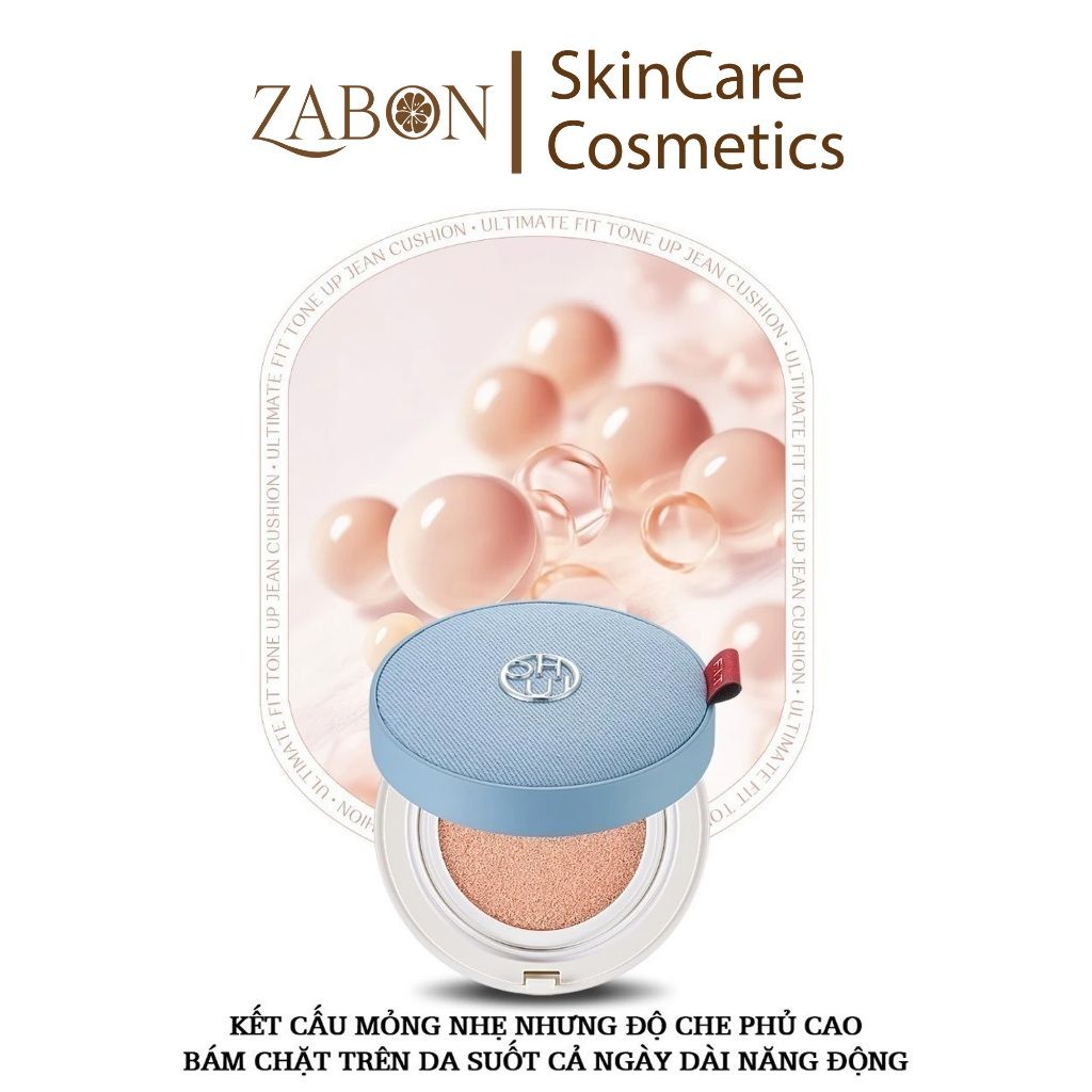 - Tone-Up Jean Cushion chứa thành phần đàn hồi trong hạt phấn giúp cho lớp trang điểm khi áp lên da mặt có kết cấu da mượt mà cùng với đó là che phủ khuyết điểm da hiệu quả (lỗ chân lông, tàn nhang, sạm nám)