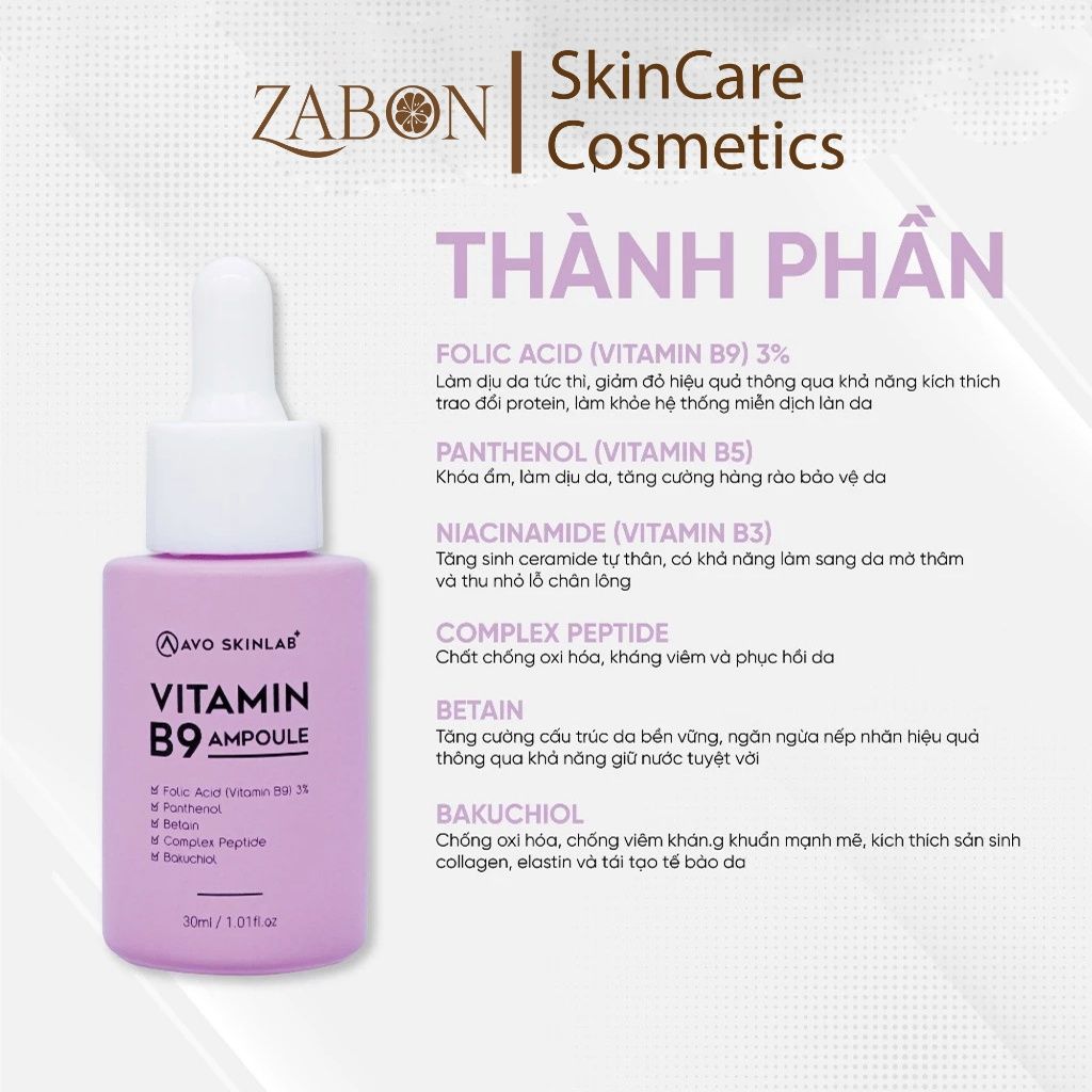 Serum AVO vitamin B9 làm dịu da hỗ trợ quá trình phục hồi và cấp ẩm cho da 30ml
