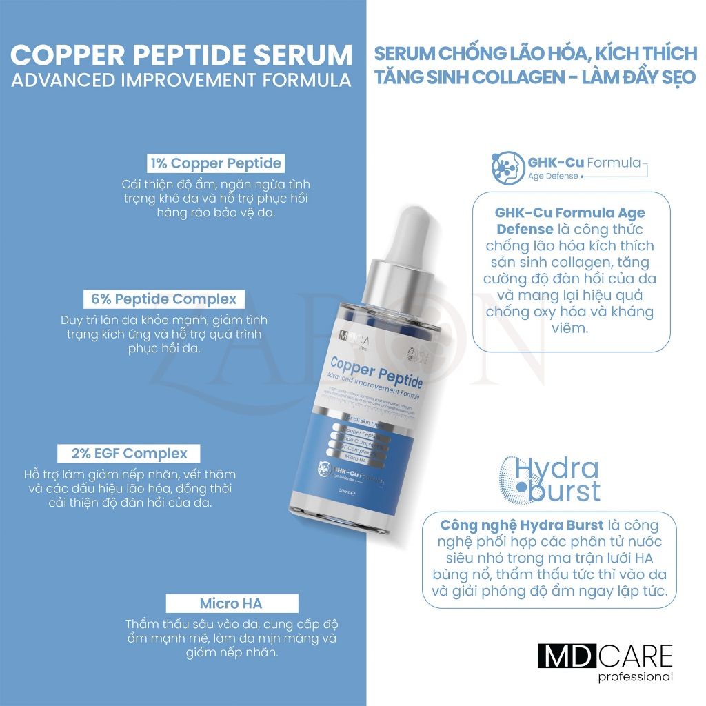 Serum chống lão hóa, tăng sinh Collagen, giảm sẹo Copper Peptide Serum MD CARE Advanced Improvement Formula 30ml