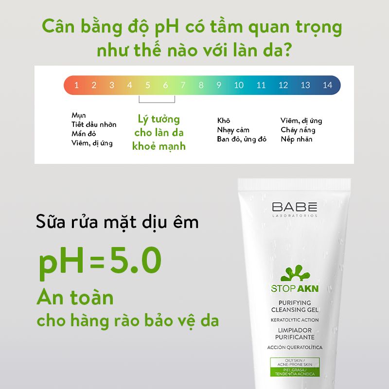 BABE Purifying Cleansing Gel có độ pH là 5 bằng với độ pH tự nhiên của da