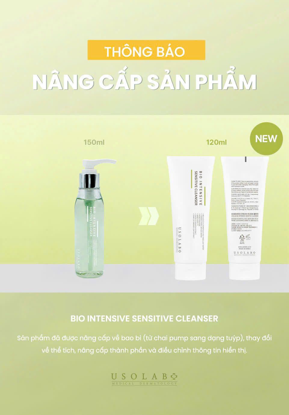 Sữa rửa mặt da dầu mụn, lỗ chân lông to USOLAB - Bio Intensive Sensitive Cleanser 120ml