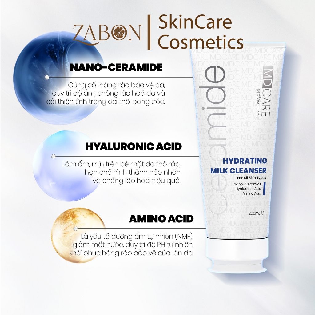 Sữa rửa mặt dịu nhẹ và cấp ẩm dành cho da nhạy cảm MD CARE Hydrating Milk Cleanser 200ml