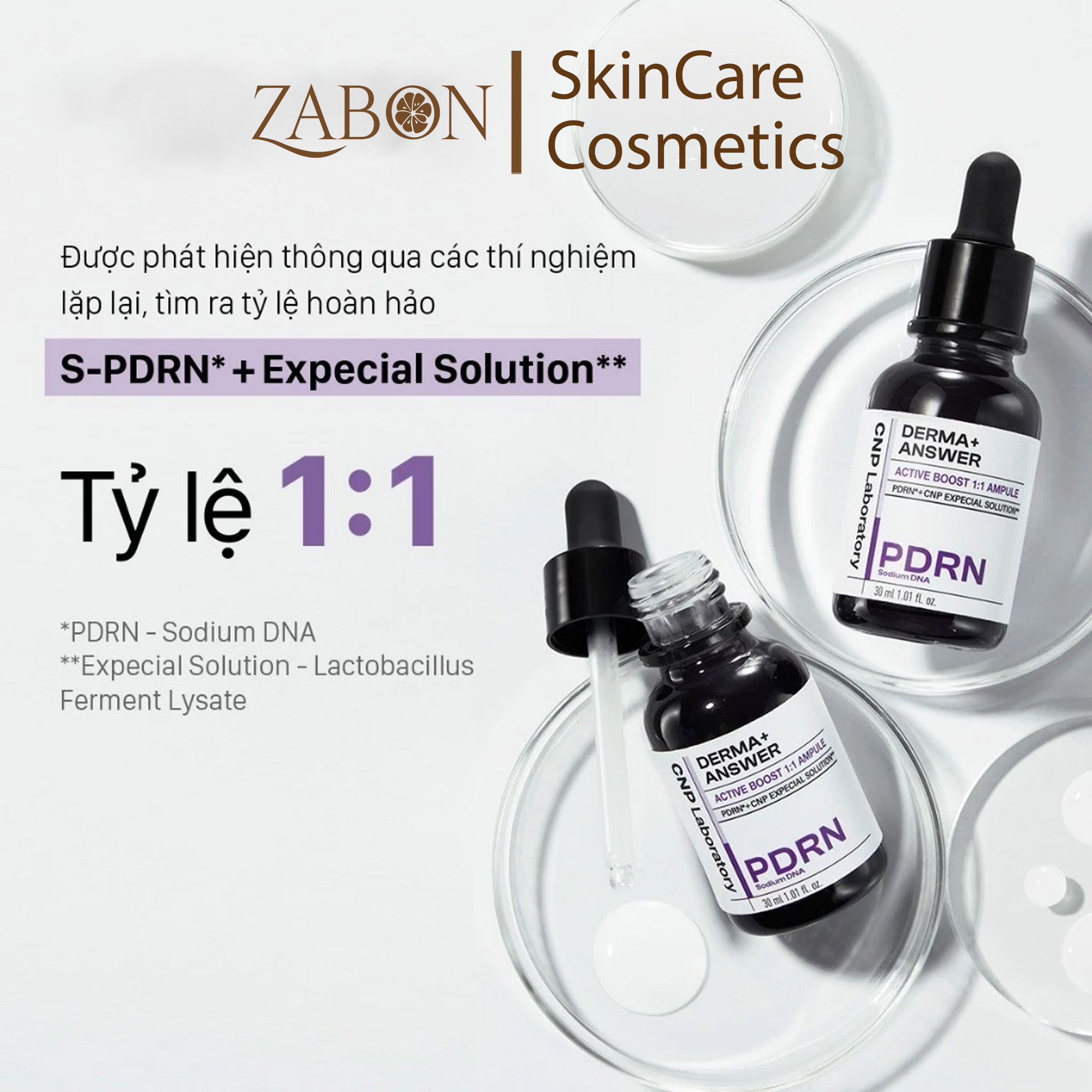 Tinh chất PDRN căng bóng sáng da hỗ trợ tái sinh CNP Derma Answer Active Boost Ampule 15ml/35ml với thành phần và công dụng: