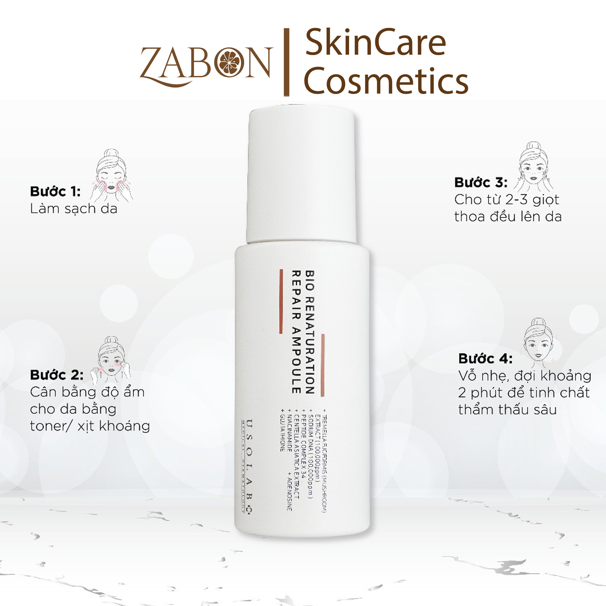 Tinh chất tế bào gốc trắng da, mờ nám, chống lão hóa Usolab Bio Renaturation Repair Ampoule 50ml