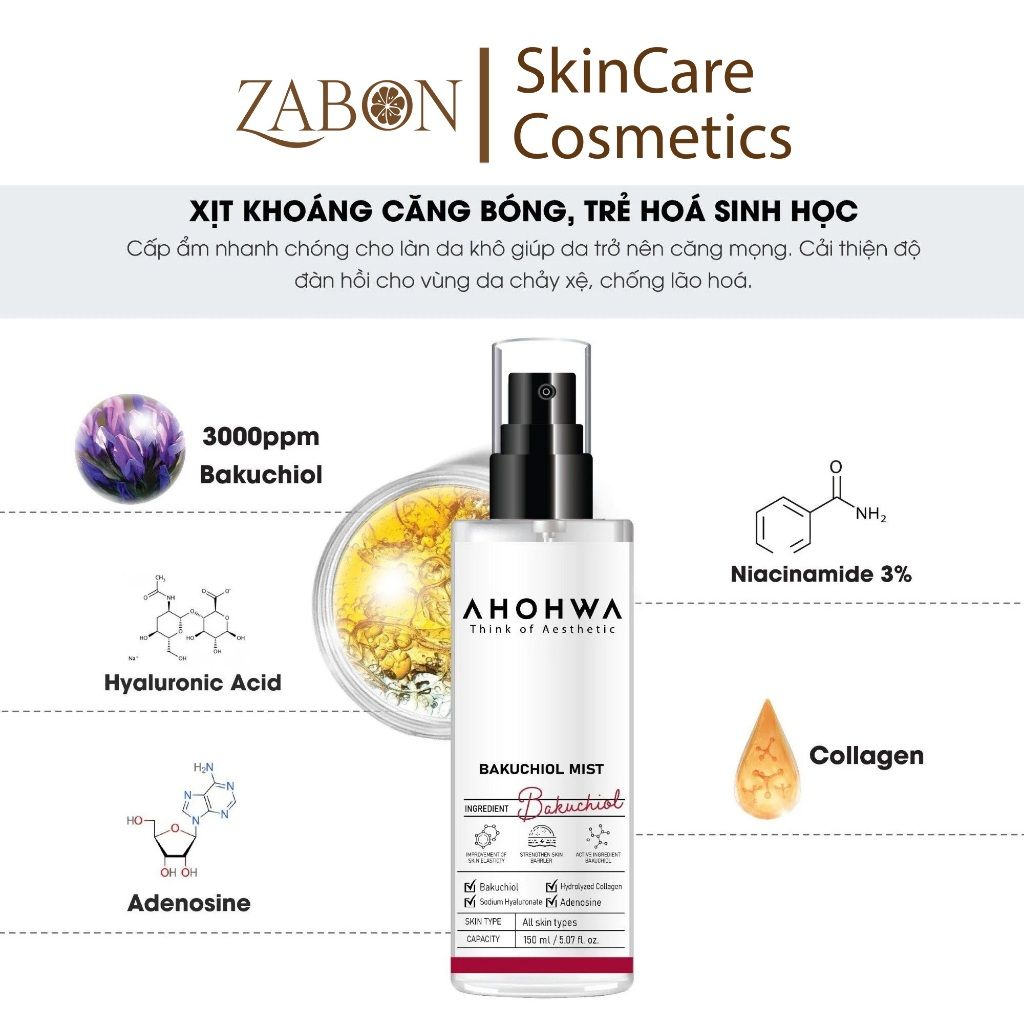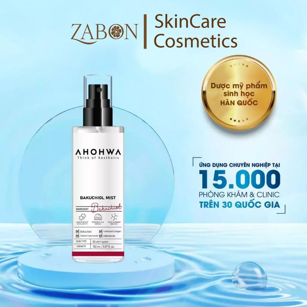 Xịt khoáng căng bóng trẻ hóa AHOHWA Bakuchiol Mist 150ml - Chống lão hóa, cấp ẩm, làm dịu