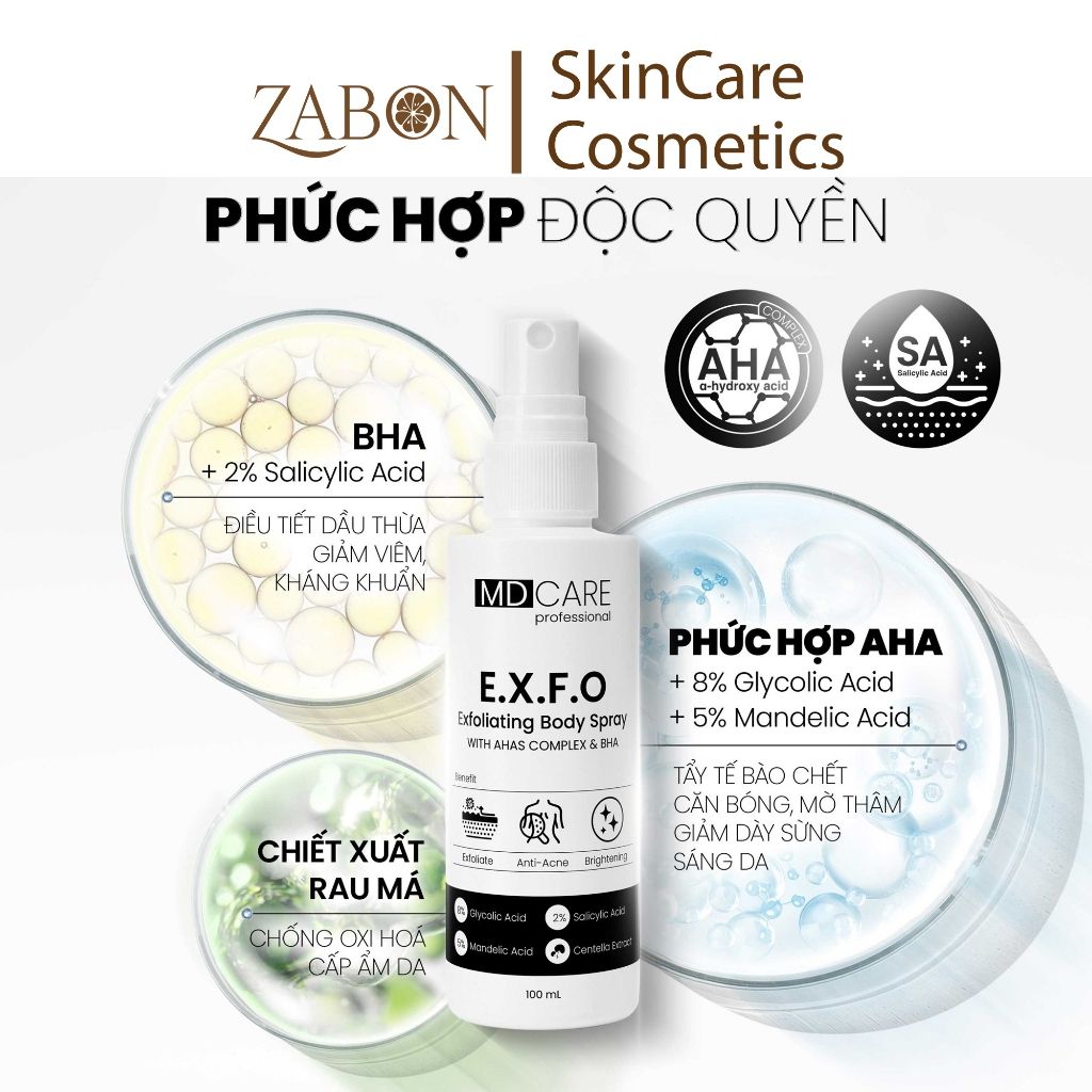 Xịt tẩy tế bào chết toàn thân MD Care Exfoliating Body Spray 100ml